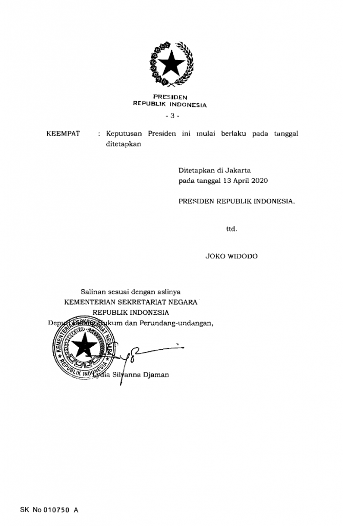Berikut Keppres Penetapan status Bencana Nonalam Penyebaran Corona Virus Disease 2019 (Covid-19) sebagai Bencana Nasional :