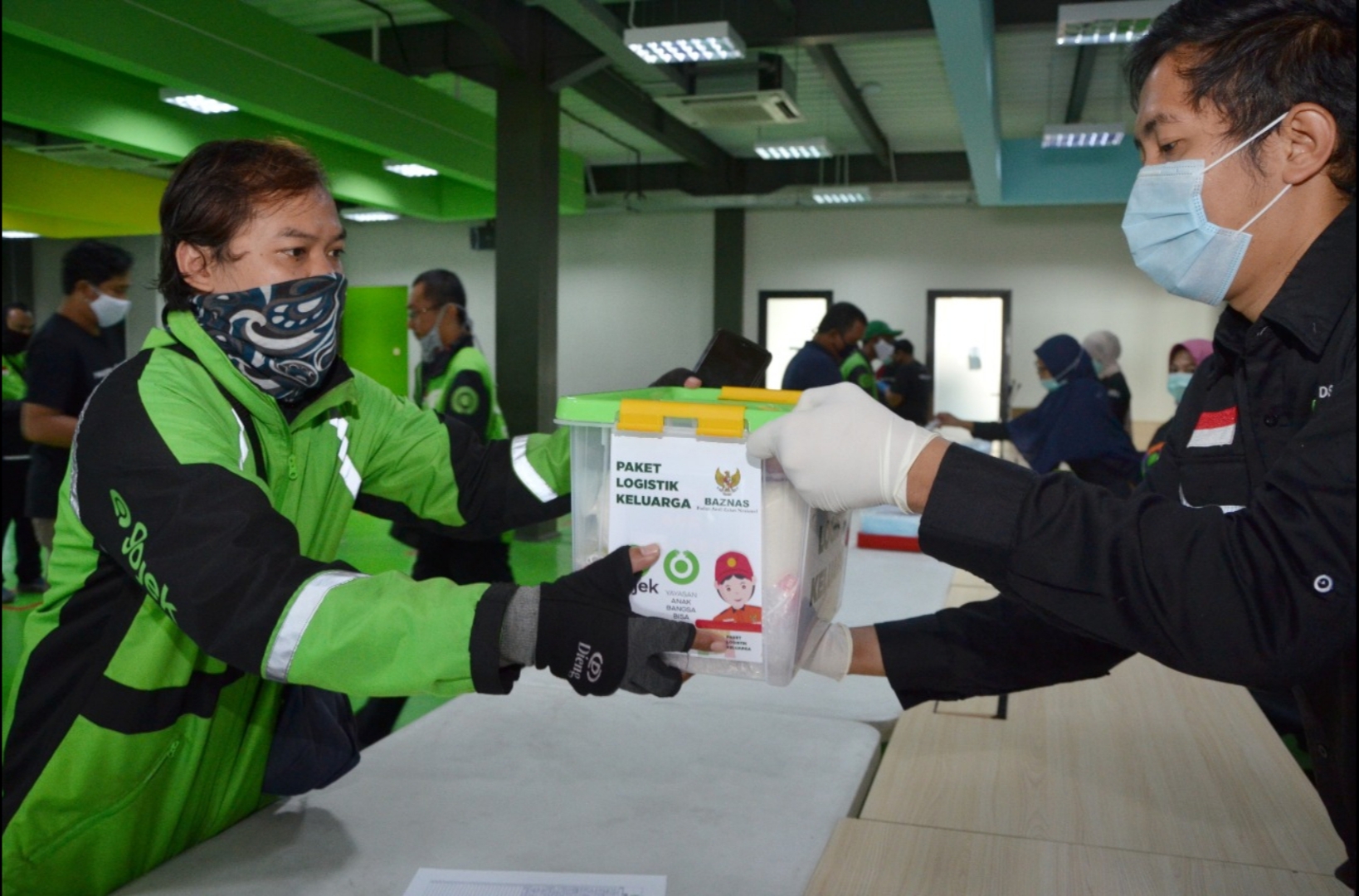 Pelanggan Gojek Donasi 1200 Paket Logistik Keluarga Melalui BAZNAS
