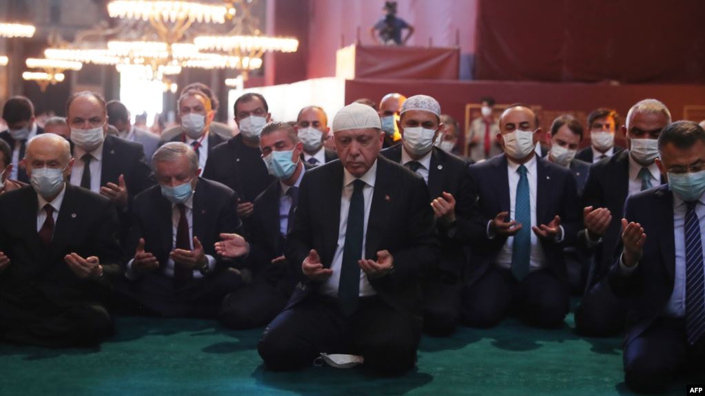 Dengan mengesampingkan kecaman masyarakat internasional, Presiden Turki Recep Tayyip Erdogan awal Juli lalu mengeluarkan dekrit yang mengembalikan bangunan ikonik itu sebagai masjid, tak lama setelah pengadilan tinggi Turki memutuskan bahwa 80 tahun lalu Hagia Sophia telah secara ilegal dijadikan sebagai museum.