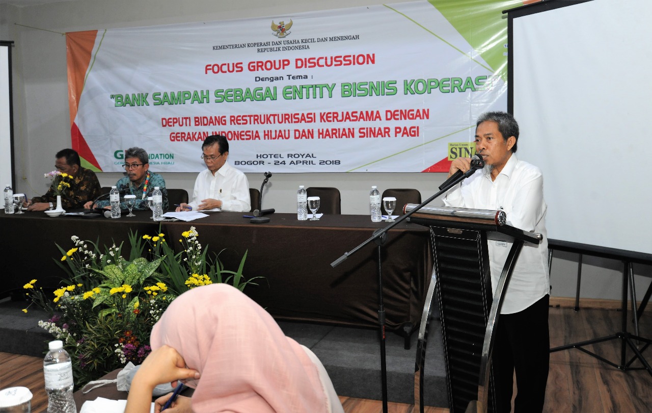 Kementerian Koperasi dan UKM menyelenggarakan Focus Group Discussion (FGD) ‘Bank Sampah Sebagai Entity Bisnis Koperasi’, di Bogor (24/4). FGD tersebut, dibuka oleh Staf Ahli Menteri Koperasi dan UKM bidang Ekonomi Makro Hasan Djauhari.