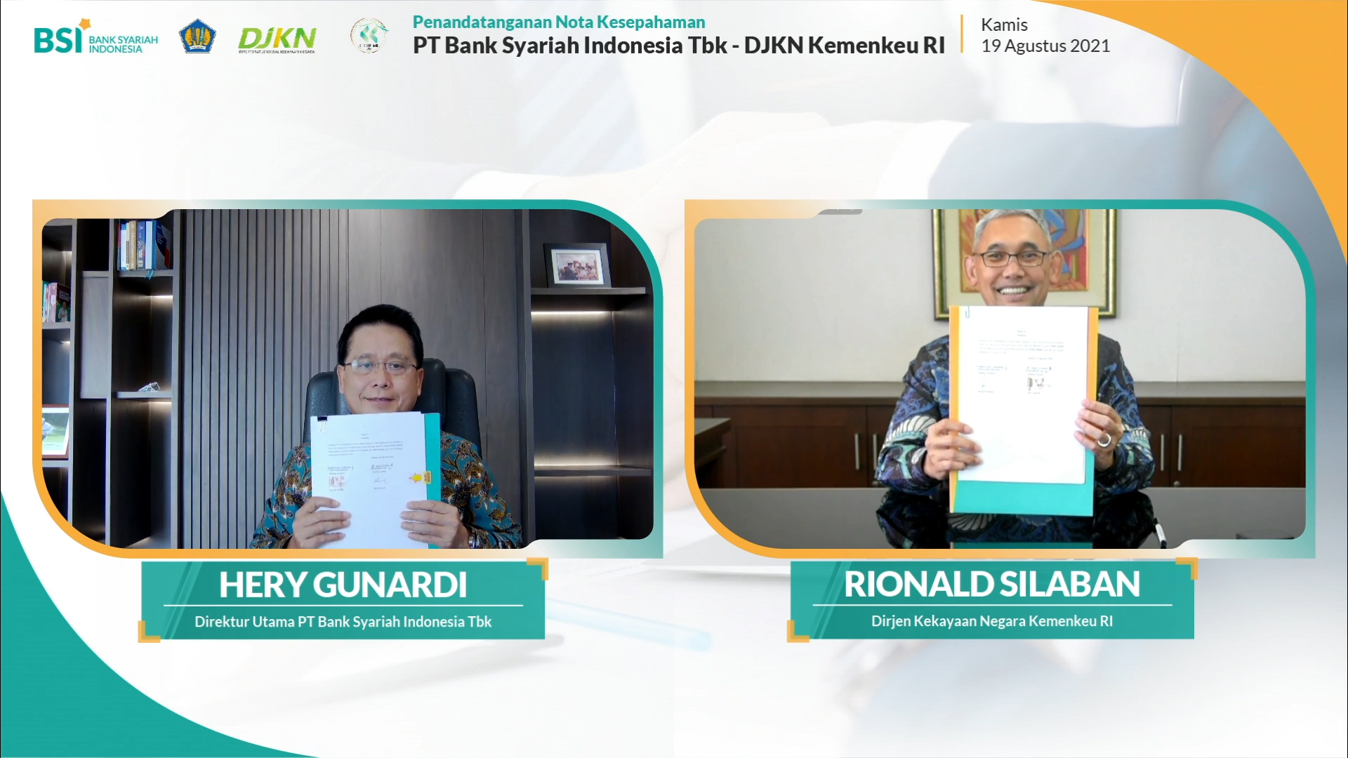 Dirjen Kekayaan Negara Kemenkeu RI Rionald Silaban menyampaikan bahwa kerjasama ini merupakan kerjasama lanjutan antara DJKN dengan bank syariah milik BUMN yang sebelumnya dilakukan dengan ex-legacy bank syariah BUMN. Ia juga berharap bahwa sinergi ini akan memberikan manfaat yang lebih besar untuk perekonomian nasional