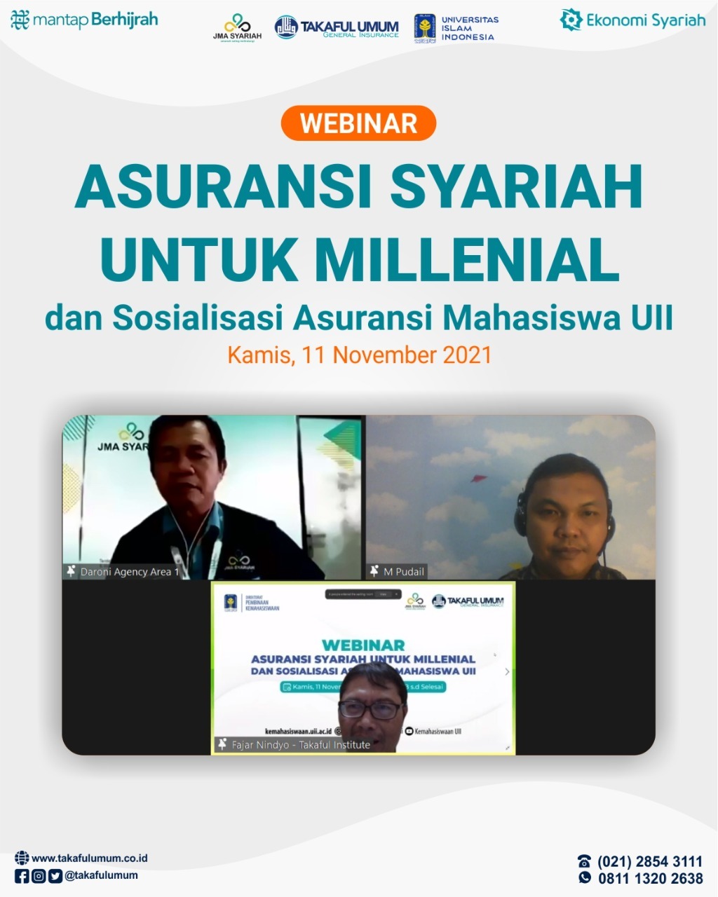MADANINEWS.ID, Jakarta – Dalam rangka meningkatkan literasi dan inklusi di kalangan muda, Takaful Umum dengan menggandeng PT Jasa Mitra Abadi Syariah, bekerja sama dengan Direktorat Pembinaan Kemahasiswaan UII (Universitas Islam Indonesia) Yogyakarta, telah melaksanakan event webinar bertema “Asuransi Syariah untuk Milenial” pada hari Kamis, 11 November 2021.