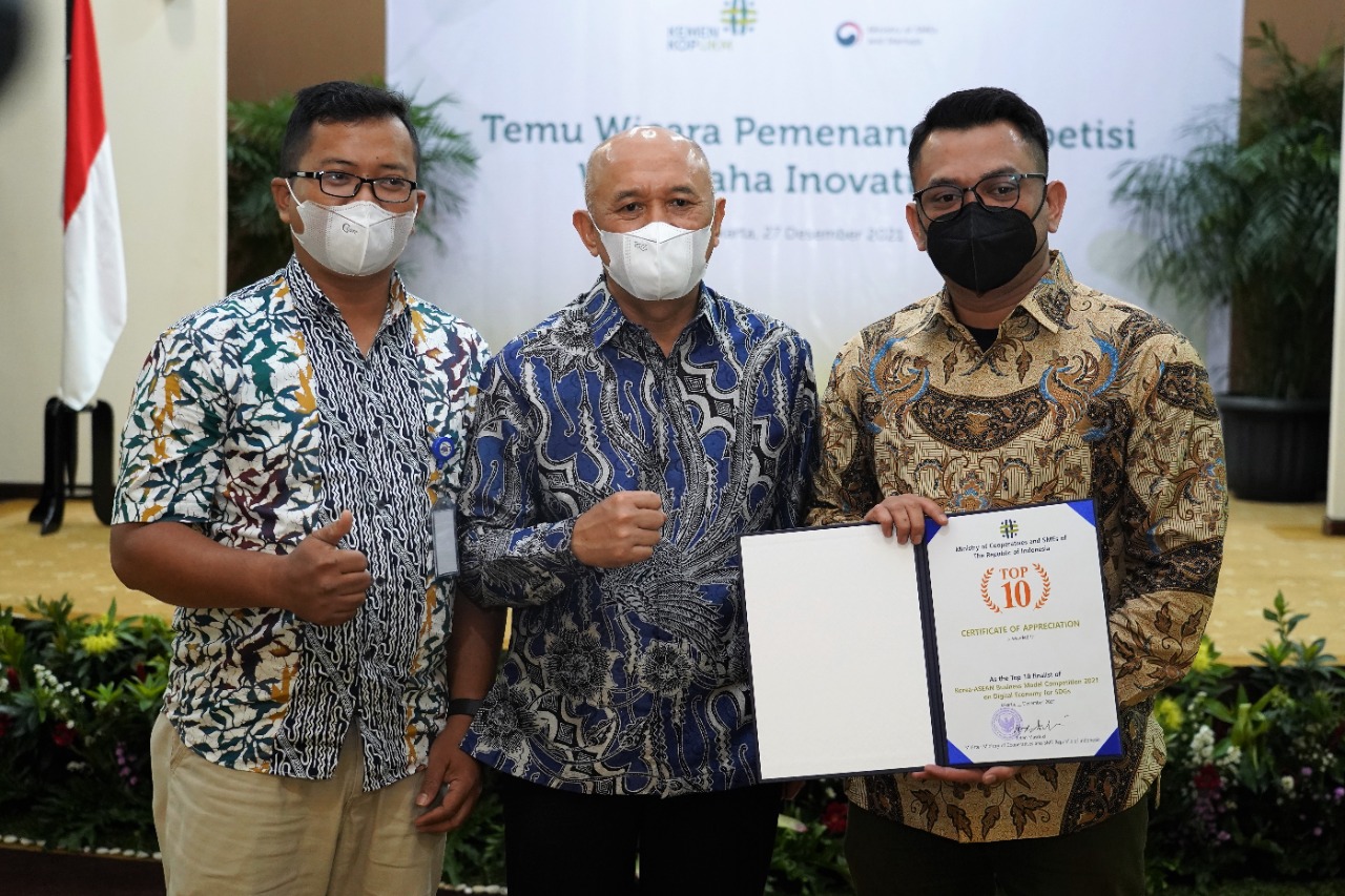 Hadir dalam kesempatan tersebut, Deputi Bidang Kewirausahaan KemenKopUKM Siti Azizah, Sekretaris KemenKopUKM Arif Rahman Hakim, Para Pemenang dan Top 10 Korea-ASEAN Business Model Competition 2021 dan Para Pemenang Ecothon Indonesia 2021.