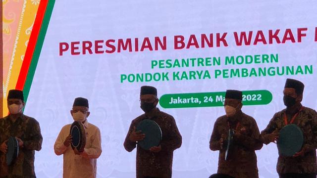 MADANINEWS.ID, Jakarta – Wakil Presiden RI Ma’ruf Amin meresmikan Bank Wakaf Mikro Pesantren Modern Pondok Karya Pembangunan di Ciracas, Jakarta Timur, (24/3/2022). Peresmian tersebut juga dihadiri oleh Ketua Dewan Komisioner OJK Wimboh Santoso dan Wakil Gubernur DKI Jakarta Ahmad Riza Patria.