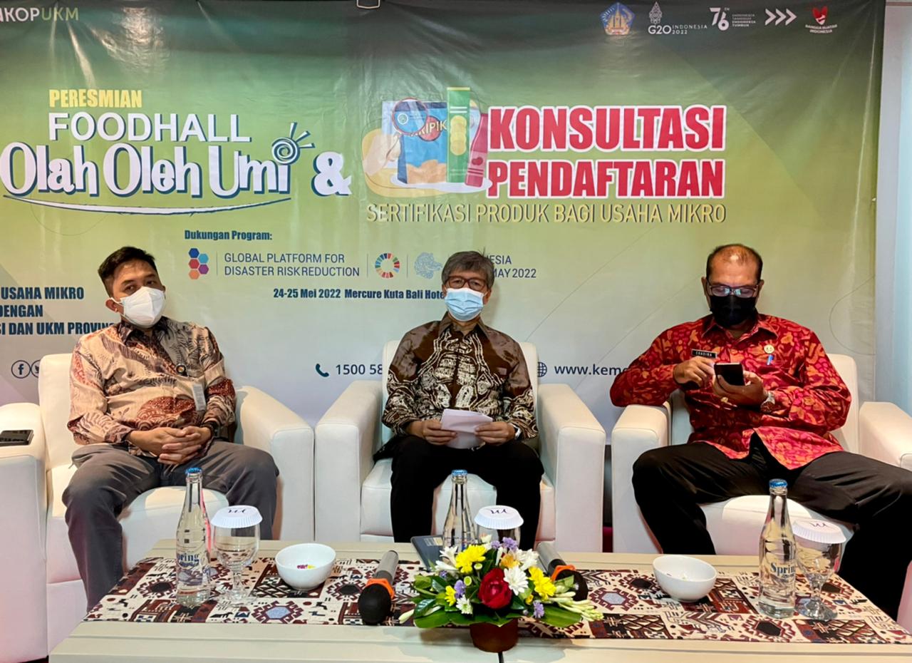 Kegiatan ini secara resmi dibuka di Hotel Mercure Kuta yang dilanjutkan meninjau ke lokasi ruang promosi produk Foodhall “Olah Oleh Umi” di Beachwalk Shopping Center Bali yang dilaksanakan pada 24-29 Mei 2022, diikuti oleh 16 dari 40 pelaku usaha mikro yang telah lolos kurasi produk bekerja sama dengan Dinas KUKM Provinsi Bali, Gojek, dan Tokopedia. Dari kegiatan ini diharapkan dapat meningkatkan daya saing dan omzet pelaku UMK.