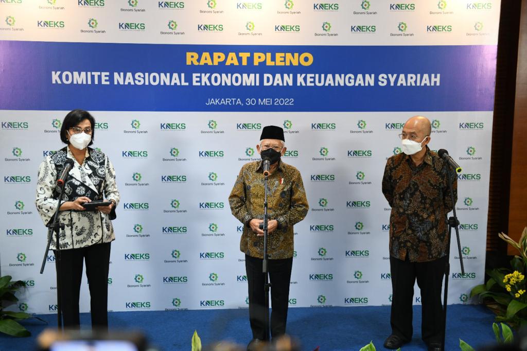 MADANINEWS.ID, Jakarta – Komite Nasional Ekonomi dan Keuangan Syariah (KNEKS) menyelenggarakan Rapat Pleno kedua yang dipimpin langsung oleh Wakil Presiden RI selaku Ketua Harian KNEKS di Ruang Mezzanine, Gedung Juanda I, Kementerian Keuangan pada Senin (30/05). Dalam rapat ini turut hadir pimpinan dari 26 kementerian/lembaga/instansi Anggota dan non-Anggota KNEKS, serta beberapa pemimpin daerah provinsi di Indonesia. Pimpinan yang hadir diantaranya adalah: Menteri Koperasi dan Usaha Kecil dan Menengah, Menteri Pariwisata dan Ekonomi Kreatif, Ketua Dewan Komisioner Otoritas Jasa Keuangan, Ketua Dewan Komisioner Lembaga Penjaminan Simpanan, Kepala Badan Riset dan Inovasi Nasional, Ketua Umum Majelis Ulama Indonesia, serta perwakilan Kementerian/Lembaga Anggota dan non-Anggota KNEKS.