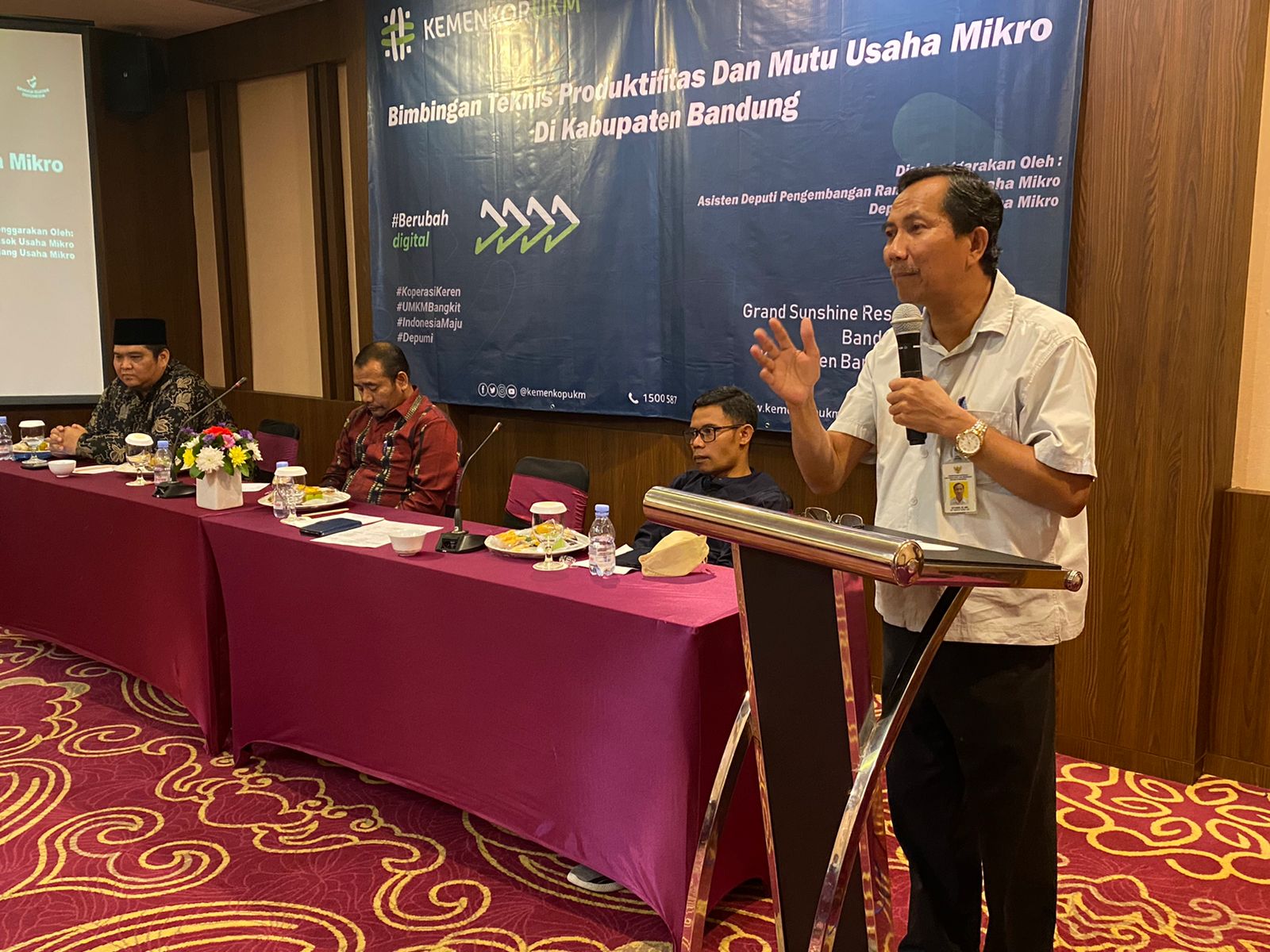 Upaya tersebut diimplementasikan melalui kegiatan Bimbingan Teknis Produktivitas dan Mutu Usaha Mikro yang dibuka oleh Asisten Deputi Pengembangan Rantai Pasok Usaha Mikro, KemenKopUKM, Sutarmo dan dihadiri oleh Kepala Dinas Koperasi dan UKM Kabupaten Bandung, Dindin Syahidin; Komisaris Bank Kertaraharja, Indra Anwari; dan Ketua Gerakan Kewirausahaan Nasional, Awang Dody.