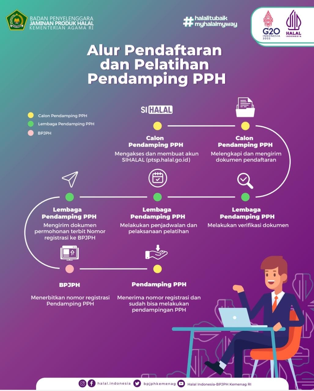 Ia menambahkan, Pendamping PPH adalah orang perorangan yang melakukan proses pendampingan PPH. “Biasanya, rekrutmen Pendamping PPH dilakukan oleh Lembaga Pendamping Proses Produk Halal (LPPPH). Tapi untuk kali ini, kita laksanakan secara terpusat melalui laman ptsp.halal.go.id,” ujar Aqil.