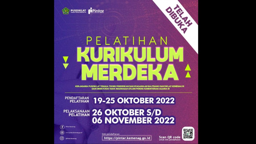 Menurut Mastuki, pendaftaran Pelatihan Kurikulum Merdeka dibuka dari 19 sampai 25 Oktober 2022. Para GTK Madrasah yang akan mendaftar, silahkan klik: Pendaftaran Pelatihan Kurikulum Merdeka.
