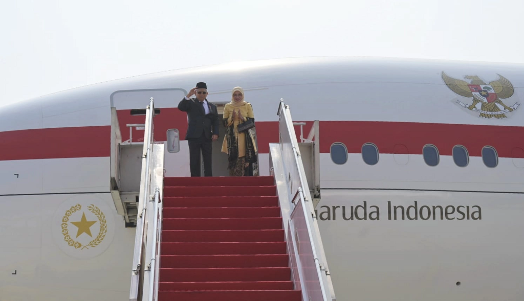 MADANINEWS.ID, JAKARTA — Wakil Presiden (Wapres) Ma’ruf Amin bersama Ibu Wury Ma’ruf Amin, bertolak ke Republik Rakyat Tiongkok (RRT), Kamis (14/09/2023), untuk melakukan serangkaian kunjungan kerja. Pesawat yang membawa Wapres dan rombongan terbatas lepas landas dari Bandar Udara (Bandara) Internasional Soekarno-Hatta, Tangerang, Banten menuju Bandara Internasional Fuzhou Changle, Fuzhou, Fujian, RRT sekitar pukul 09.00 WIB.
