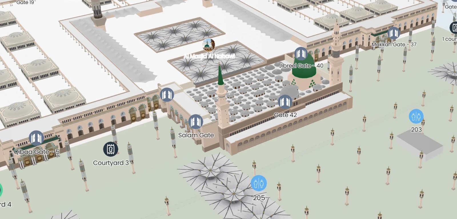 Peta digital ini dirancang untuk memudahkan pengunjung menelusuri area masjid yang terus berkembang, mulai dari pintu-pintu masuk, area shalat, menara, hingga fasilitas penunjang. Kehadirannya menjadi semakin krusial pada musim ramai seperti Ramadan dan Haji.