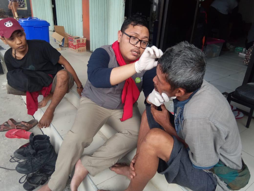Salah seorang Pasien, bernama Intang (56) menuturkan, di hari kejadian dirinya sedang duduk-duduk didepan rumahnya. Ketika gunjangan gempa terjadi dirinya terlempar hingga membentur dinding, benturan yang keras dan tertimpa matrial bangunan mengakibatkan tangan kanannya luka memar dan belum dapat digerakkan.