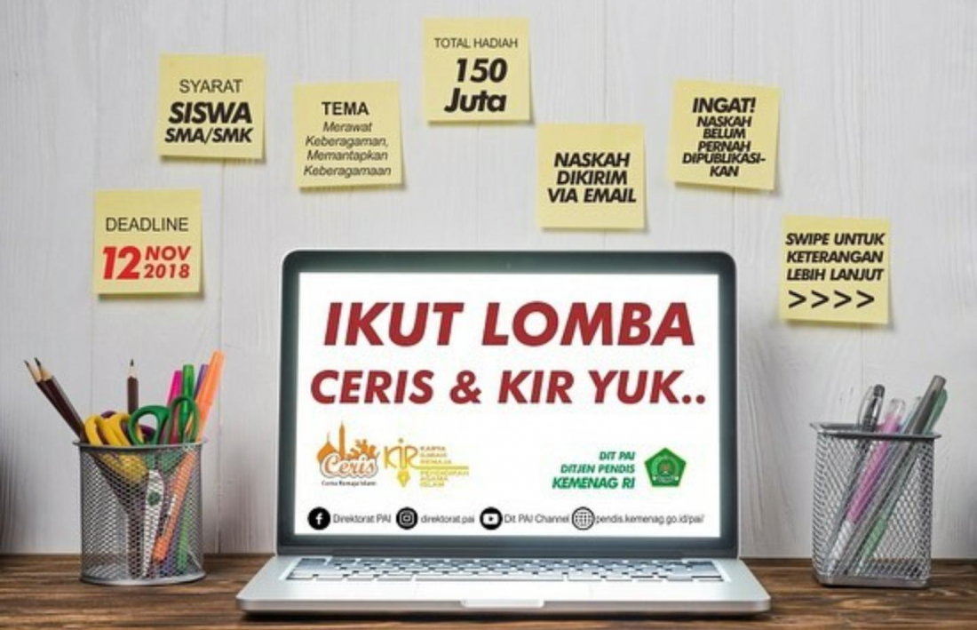 MADANINEWS.ID, JAKARTA – Kementerian Agama melalui Direktorat Pendidikan Agama Islam kembali menggelar Lomba Penulisan Cerita Remaja Islami (Ceris) dan Karya Ilmiah Remaja (KIR) Pendidikan Agama Islam.