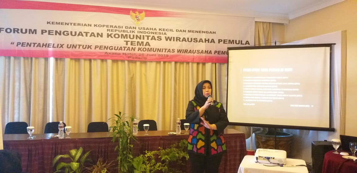 Pihaknya menggelar Forum Penguatan Komunitas Wirausaha Pemula salah satunya di Padang, Sumatera Barat, dan dihadiri 30 wirausaha pemula dari Kabupaten Solok, Pariaman, dan Sawahlunto Sumbar.
