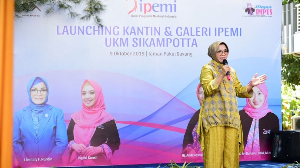 MADANINEWS.ID, MAKASSAR — Ketua PKK Sulawesi Selatan Lies F. Nurdin meresmikan kantin dan galeri Ikatan Pengusaha Muslimah Indonesia (IPEMI) yang berkolaborasi dengan UKM Sikampotta,di Makassar Rabu (9/10/2019).