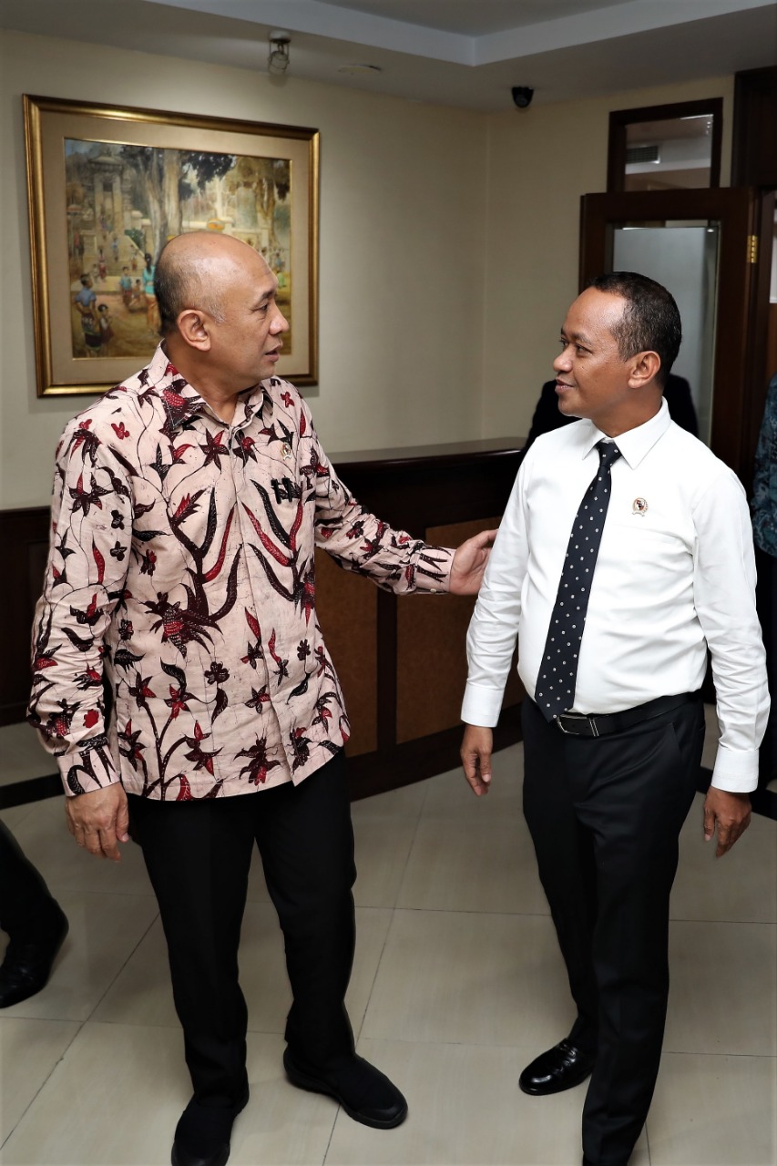 Menteri Koperasi dan UKM Teten Masduki bertemu dengan Kepala Badan Koordinasi Penaman Modal (BKPM) Bahlil Lahadalia di Kantor Kementerian Koperasi dan UKM Jakarta, Senin (6/1/2020). Setelah pertemuan itu, Teten mengatakan UMKM ke depan dalam omnibus law akan diberikan kesempatan usaha dan kesempatan investasi yang setara.