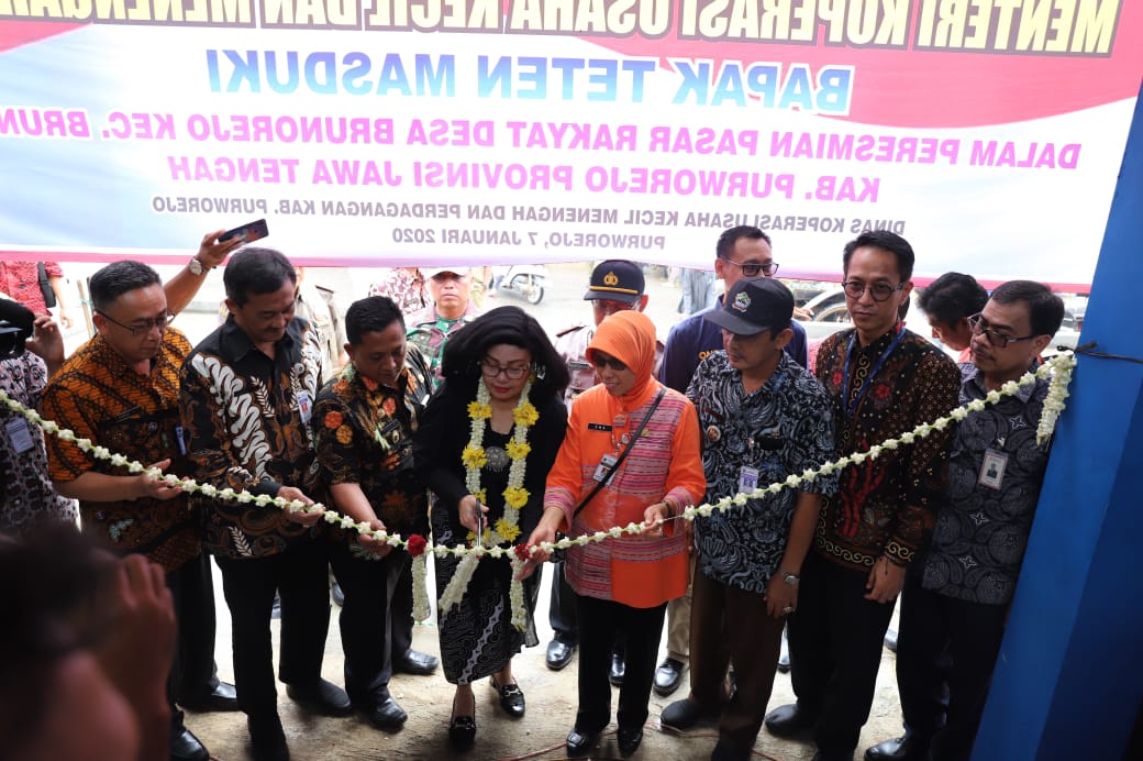Deputi Bidang Produksi dan Pemasaran Kementerian Koperasi dan UKM Victoria br. Simanungkalit meresmikan Pasar Rakyat Brunorejo di Desa Brunorejo, Kecamatan Bruno, Kabupaten Purworejo, Jawa Tengah, Selasa (7/1).