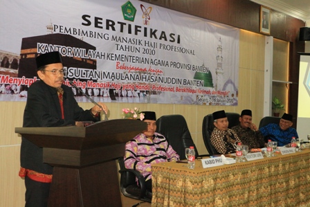 MADANINEWS.ID, SERANG – Kanwil Kemenag Provinsi Banten bekerjasama dengan UIN Sultan Maulana Hasanuddin Banten menggelar pelatihan Sertifikasi Pembimbing Manasik Haji Profesional. Pelatihan Sertifikasi ini diikuti 105 peserta yang terdiri dari perwakilan Kelompok Bimbingan Ibadah Haji (KBIH), Penyelenggara Ibadah Haji Khusus (PIHK), dan Penyelenggara Perjalanan Ibadah Umrah (PPIU).